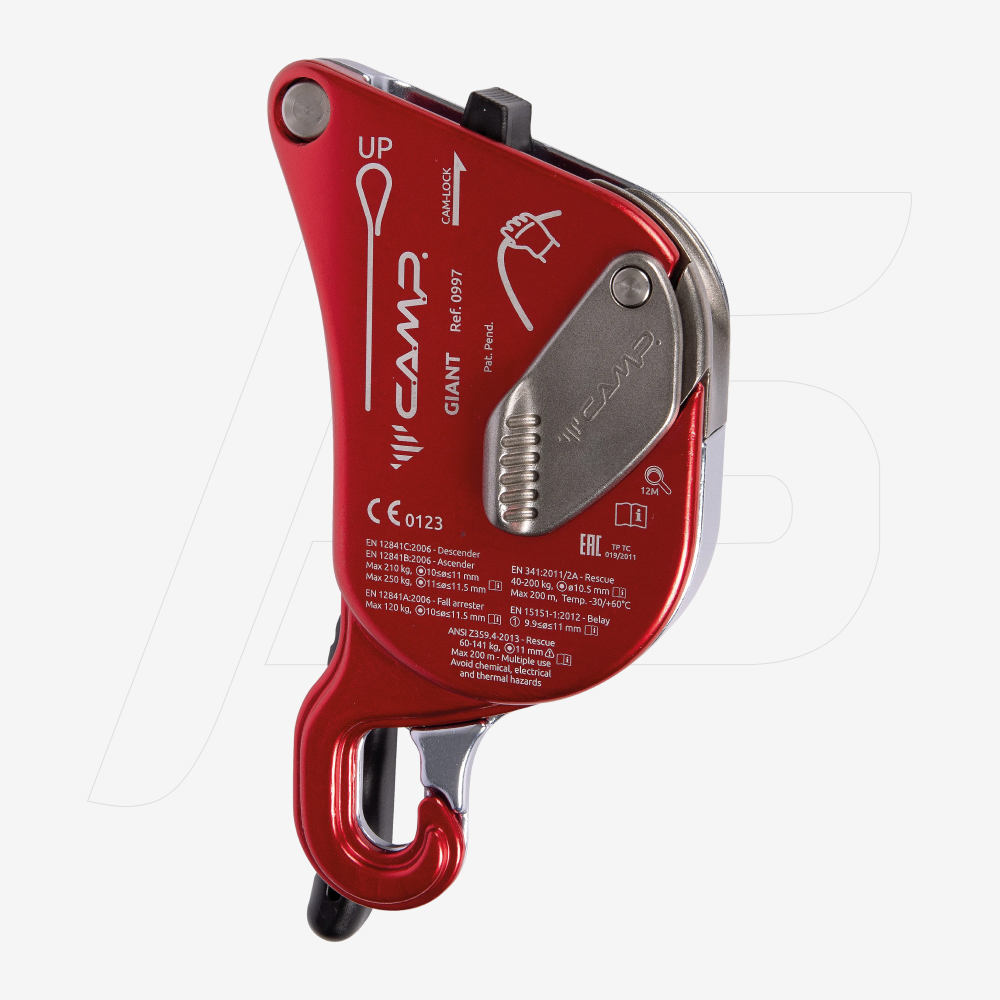 Le Giant est un descendeur multifonctionnel innovant, développé pour répondre aux spécialistes des travaux sur corde et du sauvetage les plus exigeants. Le mécanisme de fonctionnement, la robustesse incomparable de la structure en alliage d’aluminium forgée à chaud et la forme spéciale de la poignée ergonomique donnent au Giant une manœuvrabilité exceptionnelle même à des charges élevées allant jusqu’à 250 kg / deux personnes. En plus d’être un descendeur pour l’accès sur corde et le sauvetage, le Giant est certifié et peut donc être utilisé comme dispositif antichute (expl : pendant les passages de fractionnement), comme bloqueur caractérisé par une excellente fluidité et comme dispositif d’assurage d’escalade.
